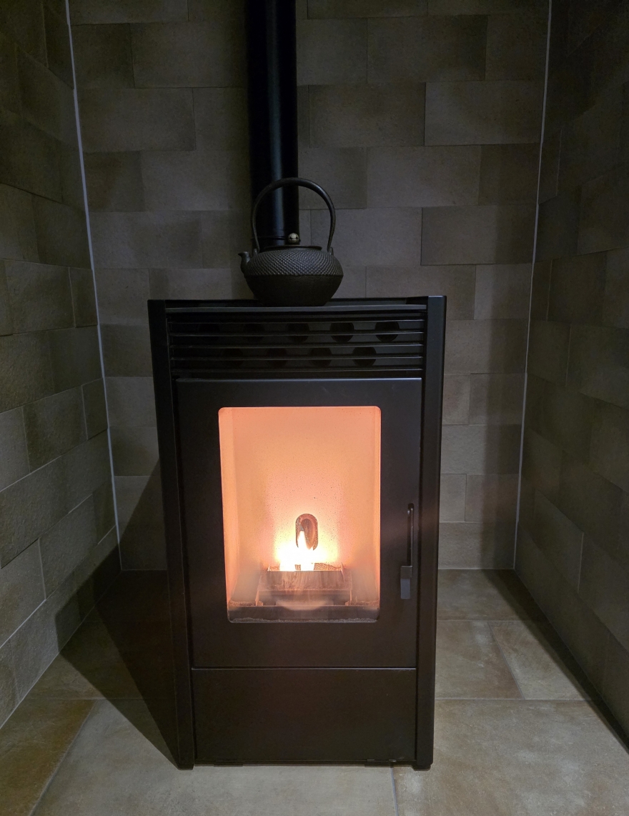 ダイニングに置いてあるペレットストーブのスイッチを入れると